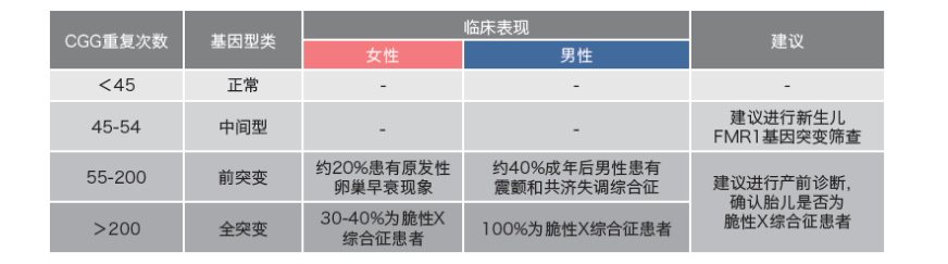 FMR1基因突變類型及臨床表現(xiàn)說明